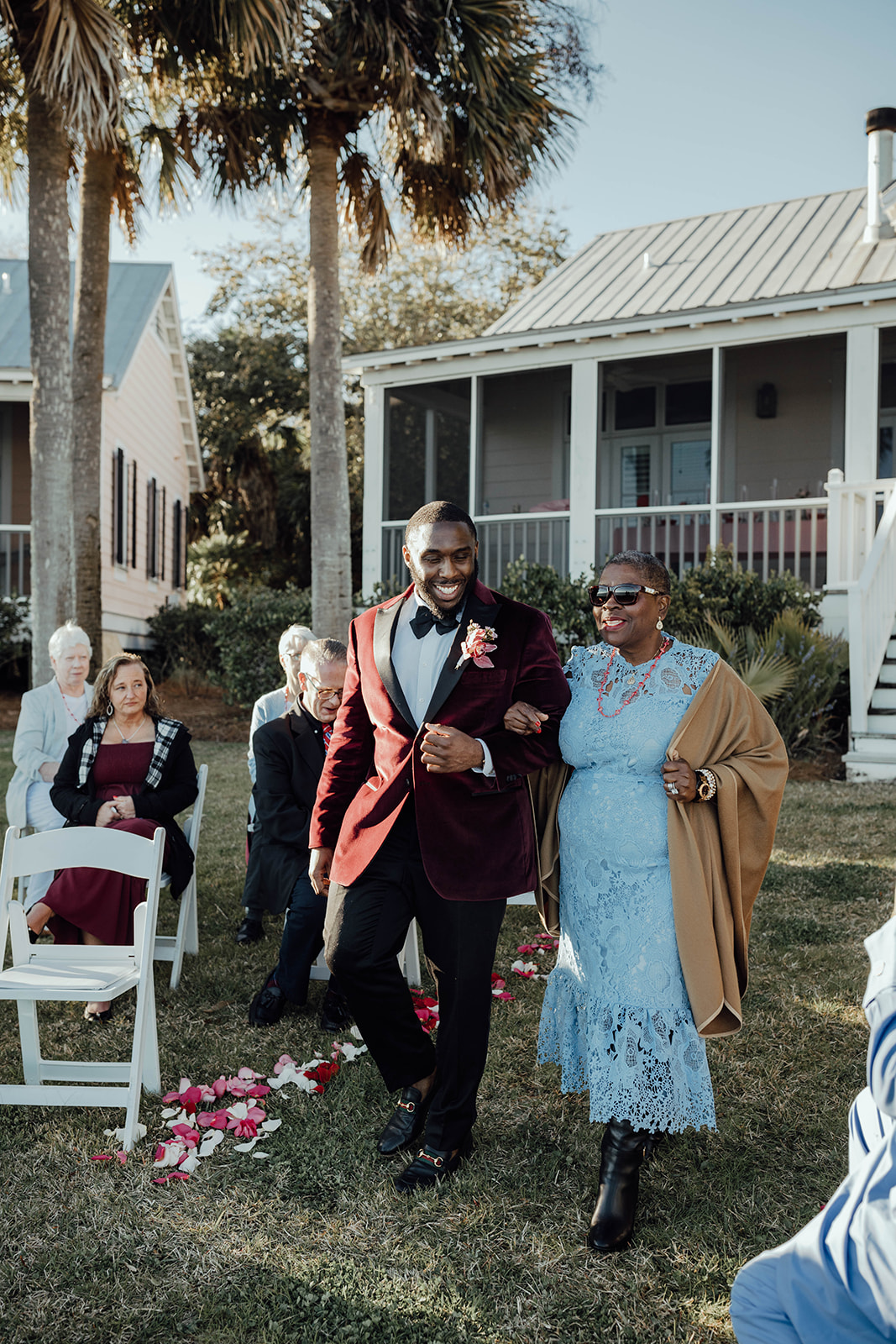 In the days leading up to their wedding day, they relaxed at the Cottages at Charleston Harbor. They even had a barbecue with family catered by Lewis Barbecue. On their wedding day, they had their first look right outside their cottage before heading off to downtown Charleston. We walked around and took their couples portraits at some of their favorite spots in Charleston.